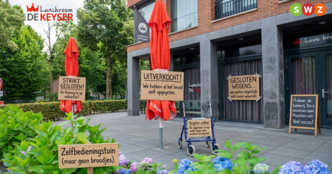 De komende weken hebben we een paar sluitingsdagen. Zaterdag 25 aprilDinsdag 5 meiDonderdag 14 mei t/m zaterdag 16 mei. Daaromheen bent u natuurlijk van harte welkom.