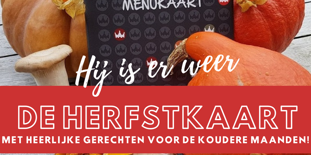 Heerlijke herfstgerechten zoals onze pompoen- en rustieke uien- soep, kip stroganoff met friet, omelet met bospaddenstoelen en truffelolie en een broodje warme beenham.
